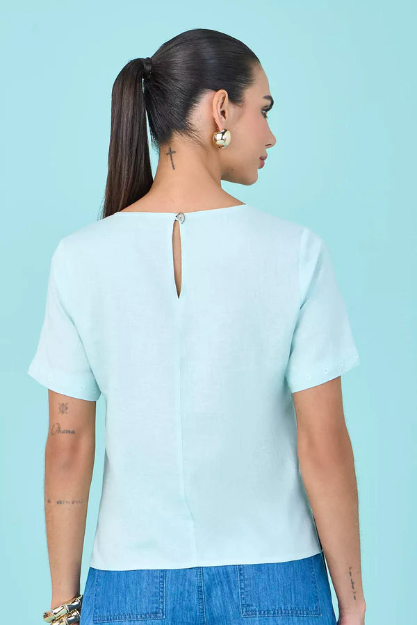 SCALON - Blusa Viscose Manga Curta Verde Claro