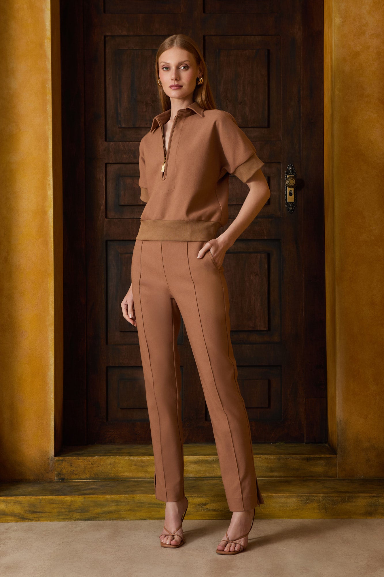 AGILITÀ - Calça Nervura Bolso Faca Camel Calça desenvolvida em tecido de excelente qualidade que oferece conforto e estrutura para uso contínuo. O camel é uma escolha refinada que funciona como peça versátil, complementando diferentes estilos e composições. O detalhe de nervura adiciona textura visual interessante, enquanto o bolso faca proporciona funcionalidade e elegância construtiva. Confeccionada com precisão nos detalhes de costura e acabamento, garante caimento impecável e durabilidade excepcional. Investimento inteligente para quem valoriza peças bem executadas que transcendem tendências sazonais.