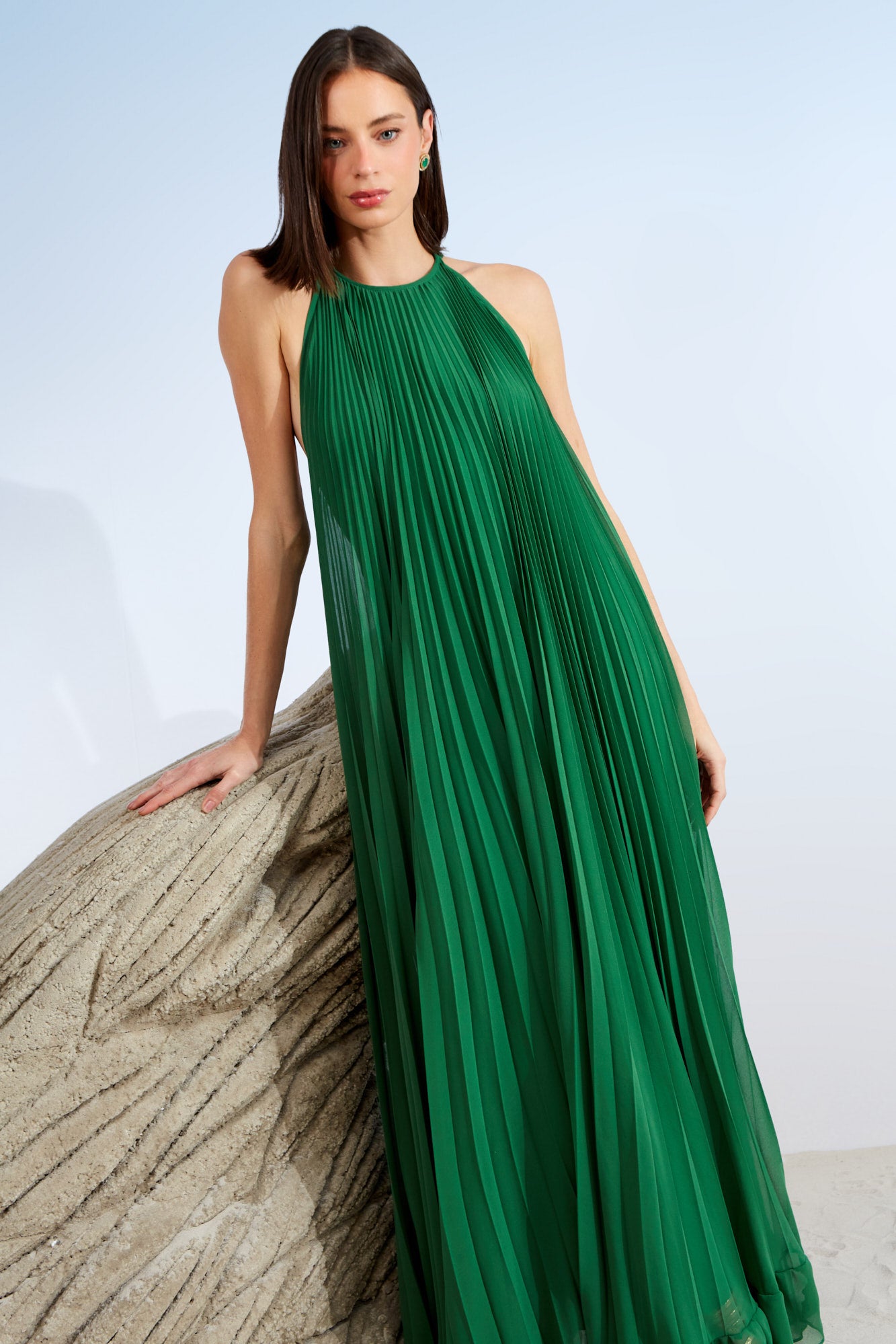 AGILITÀ - Vestido Longo Plissado Detalhe Costas Eucalipto
