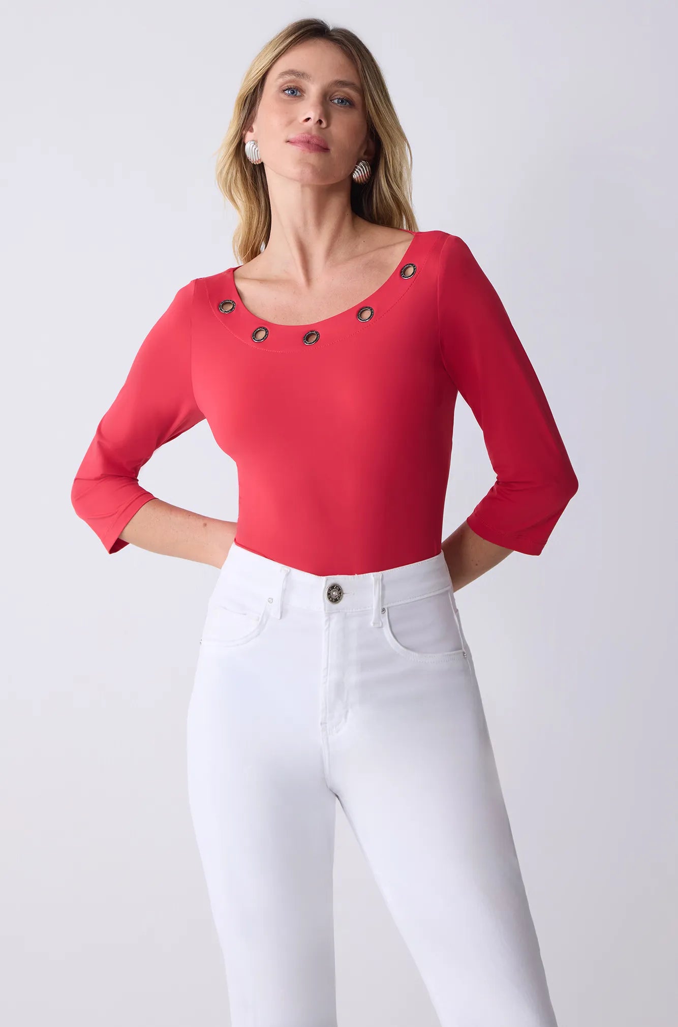 ONE UP - Blusa Red C/ Ilhos Fume Vermelho