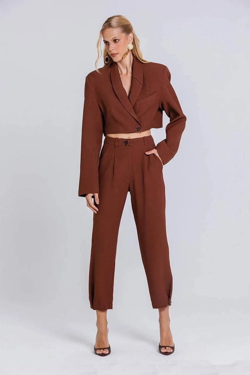 A Calça Telis Hera Marrom da linha CHARTH combina elegância e funcionalidade em um tom marrom sofisticado. Seu corte preciso valoriza a silhueta, proporcionando conforto e liberdade de movimento ao longo do dia. Ideal para quem busca uma peça versátil e de alta qualidade para compor looks profissionais e contemporâneos.
