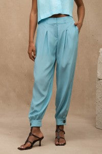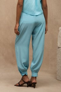 MADRE REINA - Calça Rebeca Mr Seda Azul Turquesa
