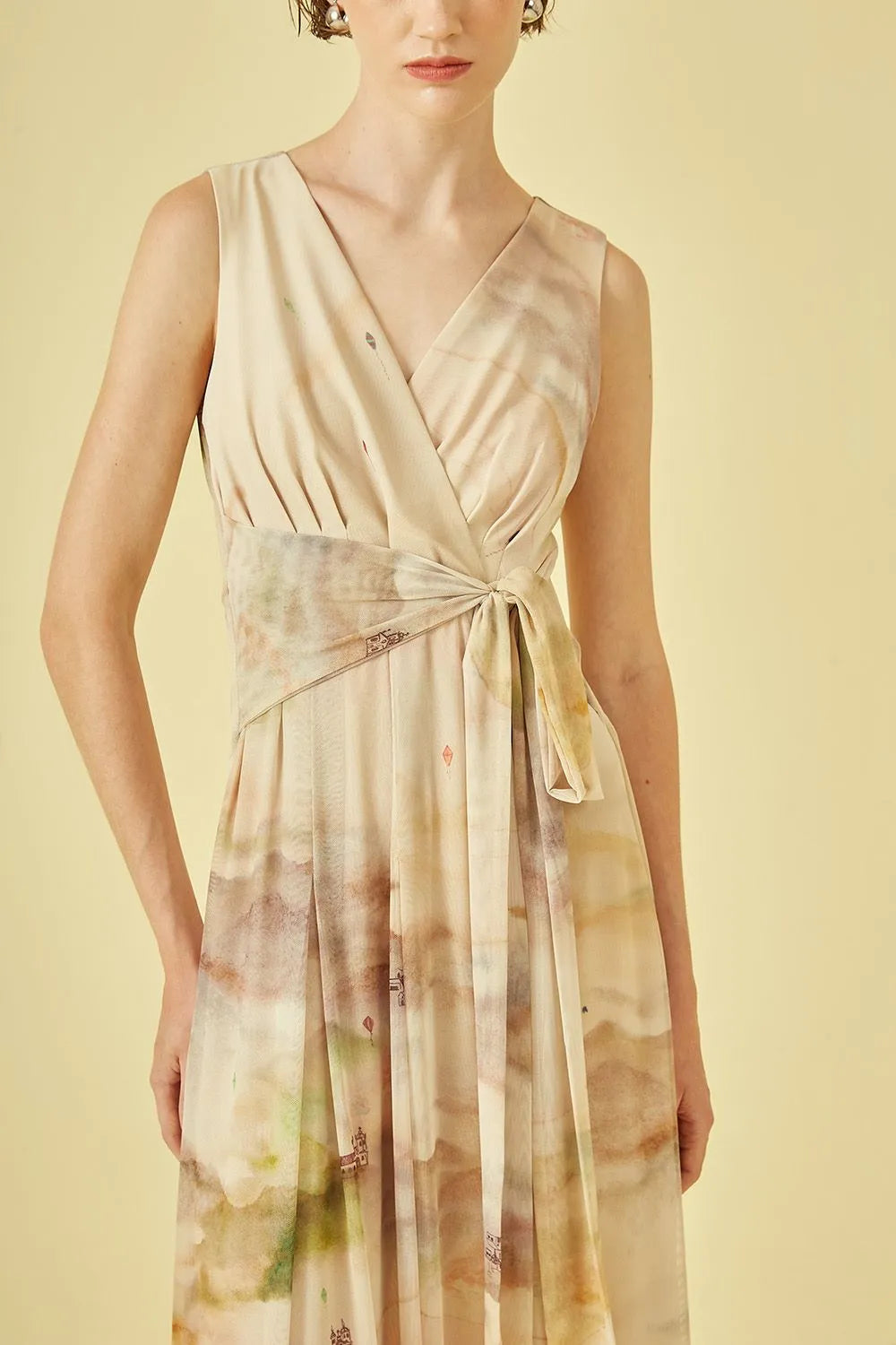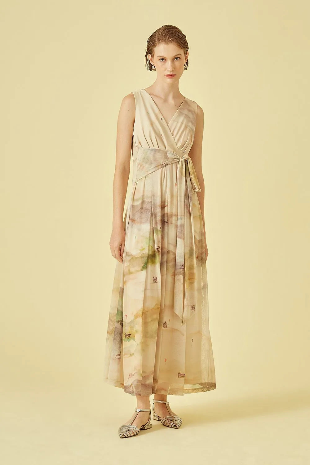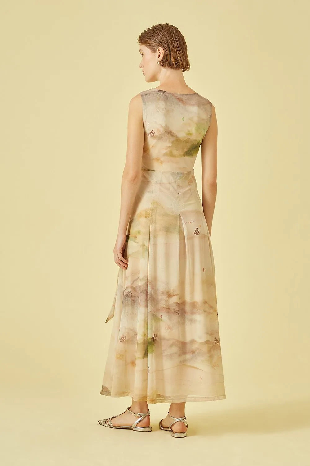 CORI - Vestido Cachecour em Tules Estampa Vilarejo Bege