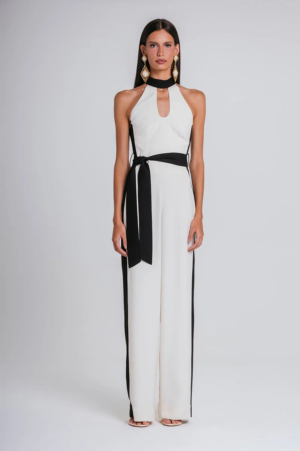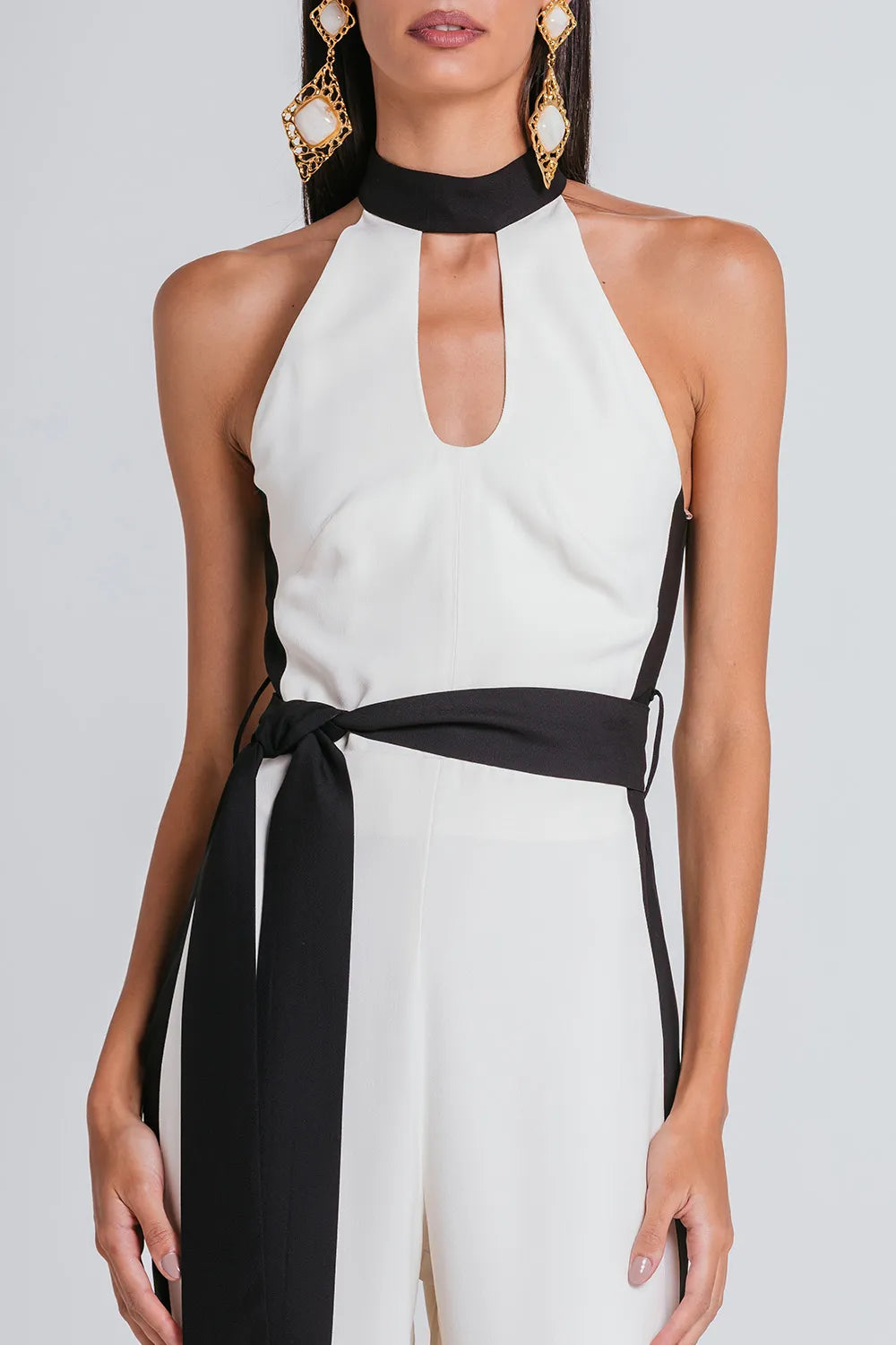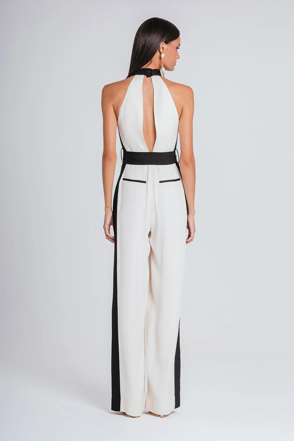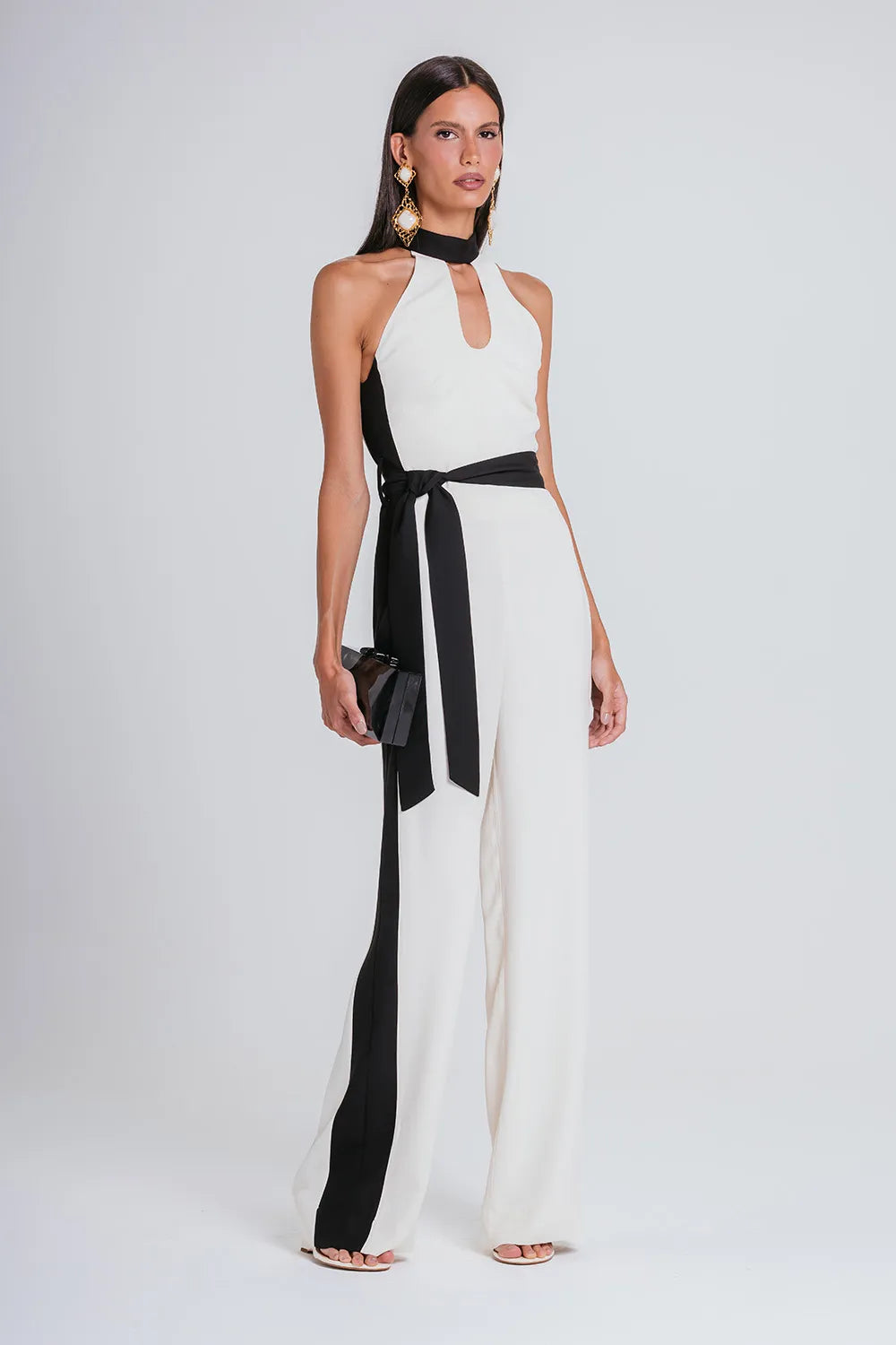Macacão Miranda em combinação marfim e preto, uma peça versátil que transcende ocasiões. O design bicolor oferece sofisticação discreta, permitindo looks tanto para ambientes corporativos quanto para momentos de lazer. Produzido em tecido premium com excelente caimento, garante conforto e durabilidade. Uma escolha inteligente para quem valoriza praticidade sem comprometer o estilo.