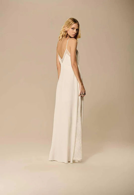 CAOS - Vestido Cetim Nesgas Renda OFF White