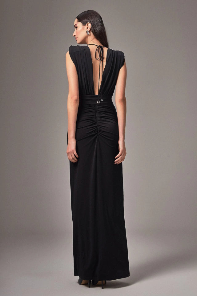 VICTOR DZENK - Vestido Jersey Drape e Faixa Bordada Preto
