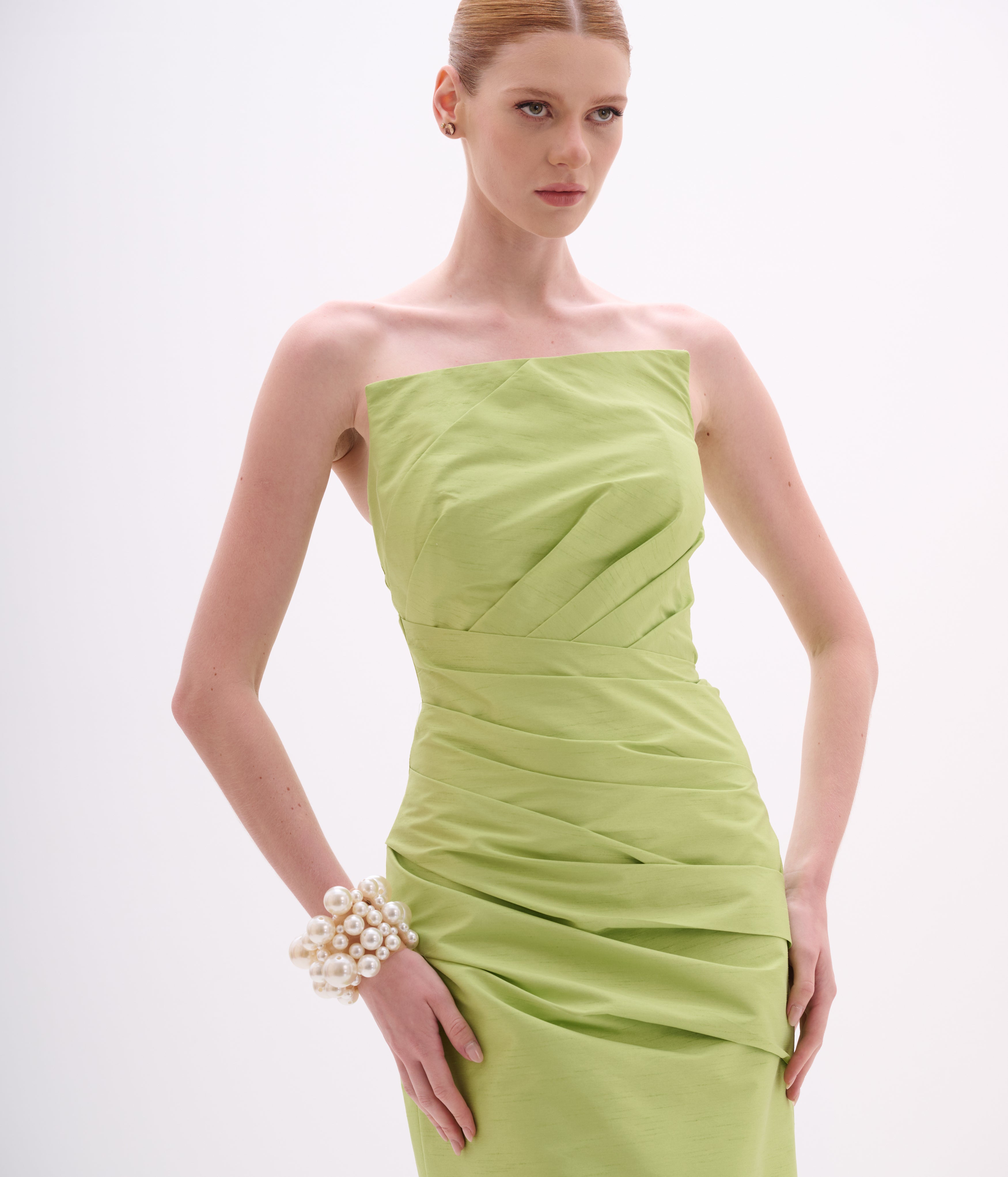 Este vestido longo tomara que caia da coleção Arte Sacra apresenta um design sofisticado com busto quadrado, confeccionado em shantung silk na cor acid lima. A textura nobre do tecido alia-se ao corte elegante para proporcionar caimento impecável e conforto, ideal para ocasiões que exigem presença marcante e estilo refinado. Sua tonalidade vibrante adiciona um toque contemporâneo, valorizando a silhueta com discrição e charme.