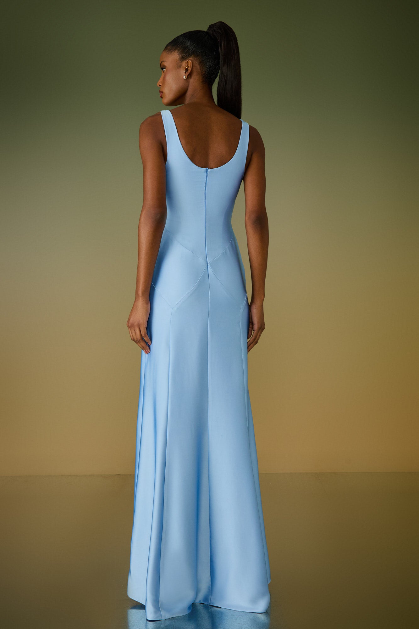 Vestido longo Anja com recortes estratégicos que criam visual moderno e sofisticado. A cor frozen oferece elegância contemporânea, enquanto os recortes adicionam movimento e dimensão ao design. Ideal para eventos noturnos e ocasiões especiais, a peça equilibra ousadia e refinamento. Confeccionado em tecido estruturado que mantém a forma impecável, proporcionando conforto sem abrir mão da elegância.