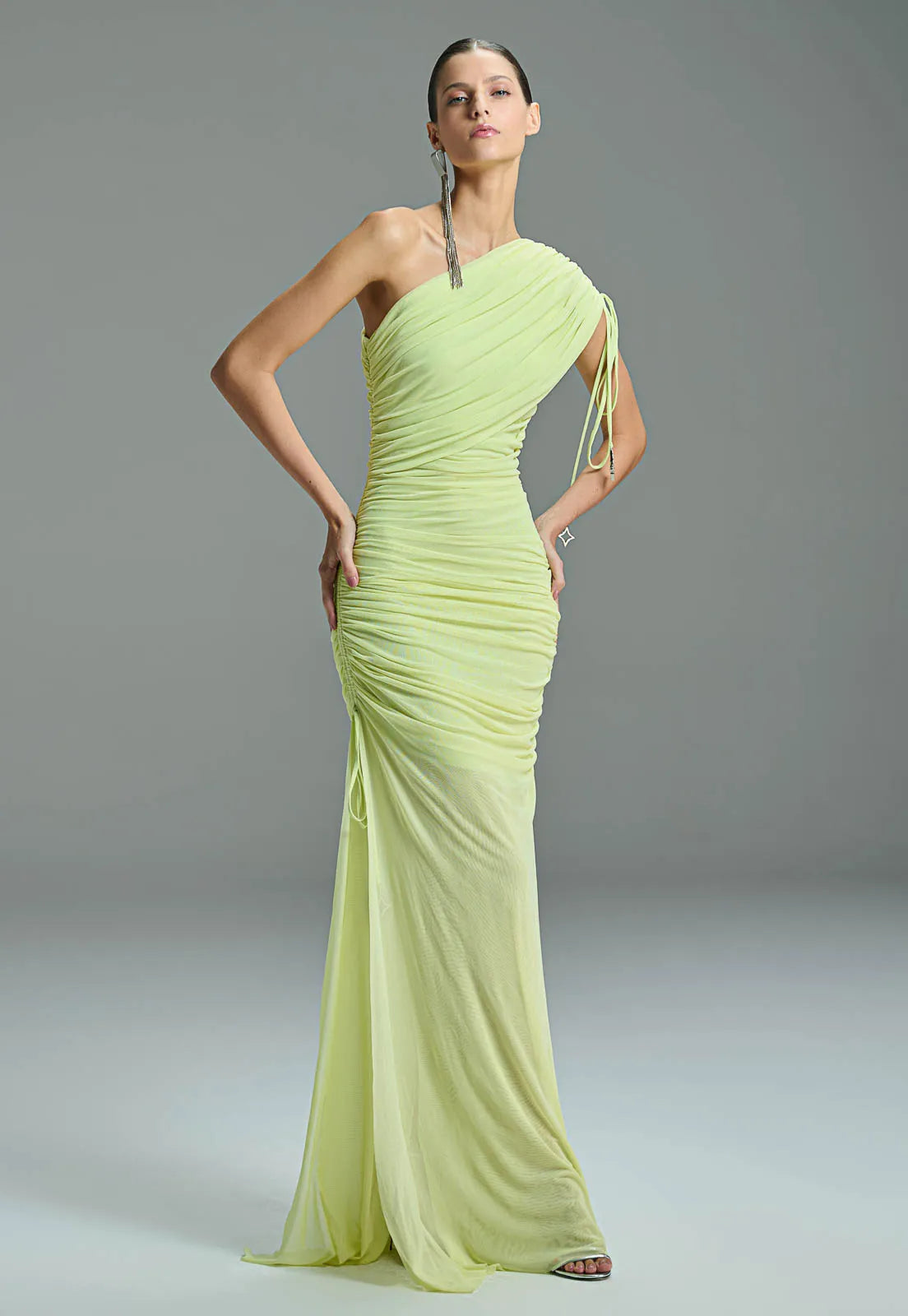 CAOS - Vestido Longo de Tule Drapeado Menta