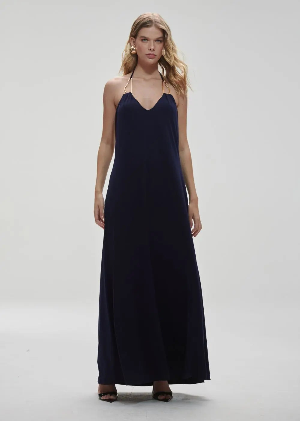 ALPHORRIA - Vestido Longuete Metal Exclusivo Azul Marinho