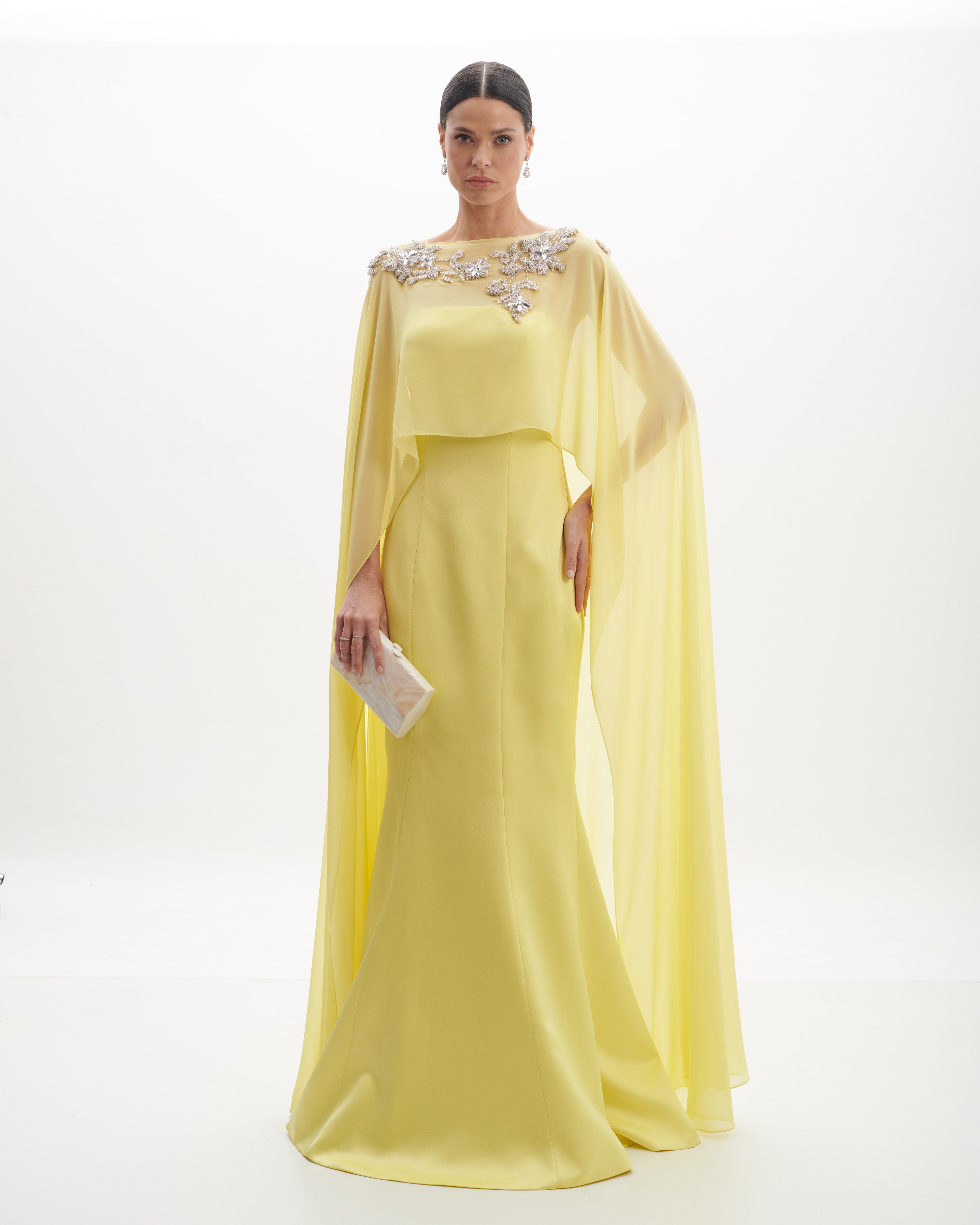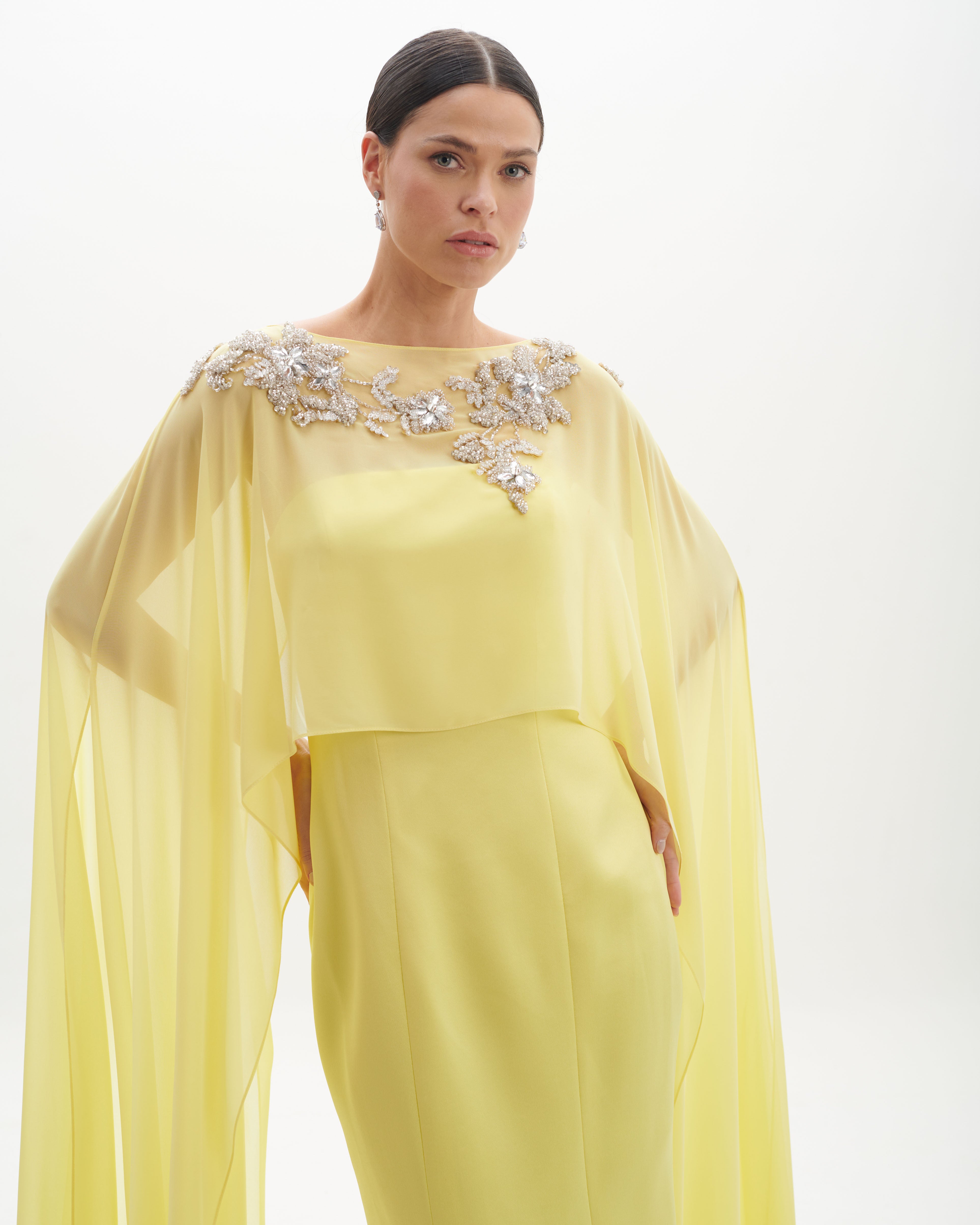 VESTIDO POLEN COM ECHARPE BORDADO AMARELO